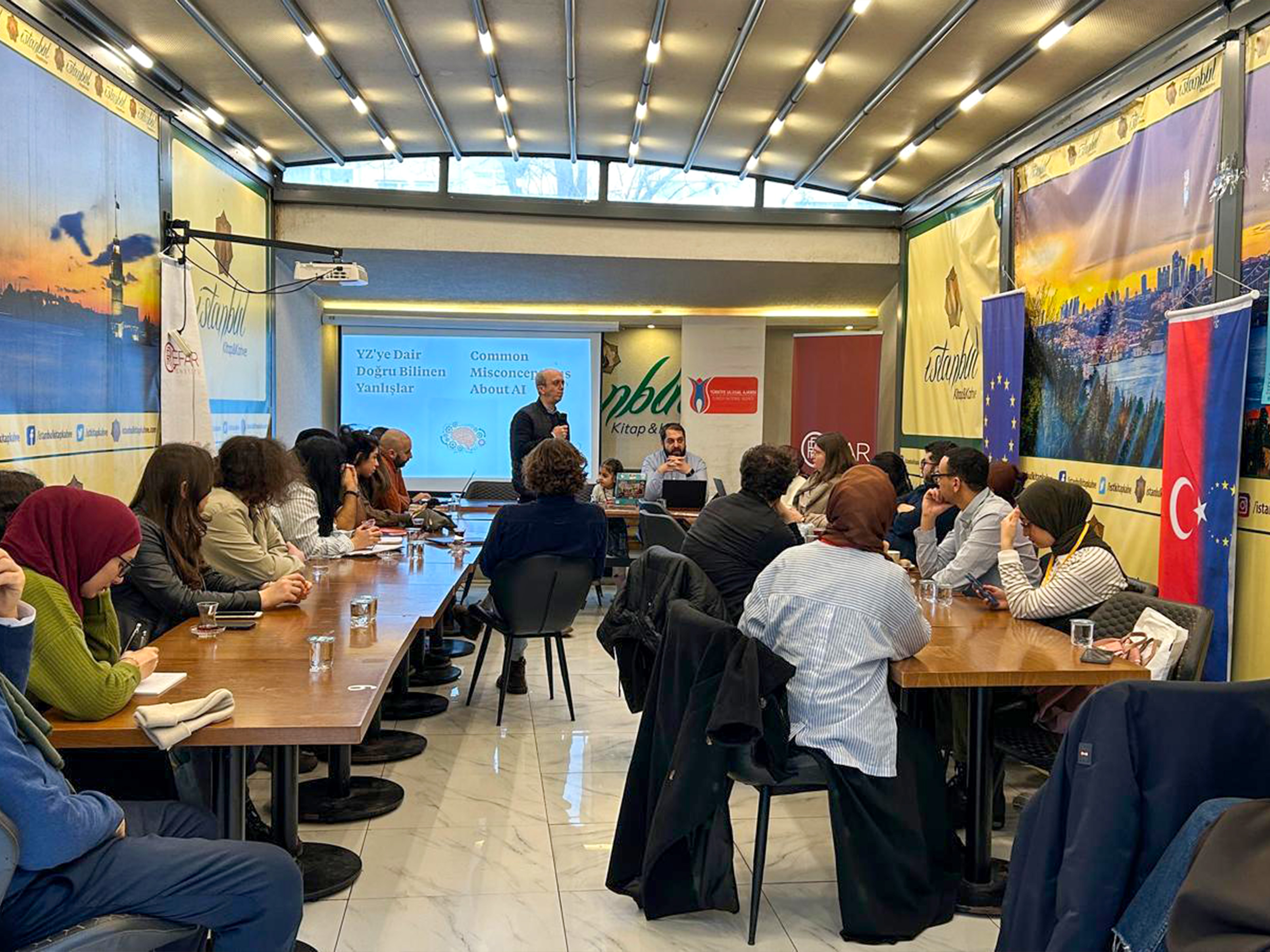 KA210 Gençlik Alanında Küçük Ölçekli Ortaklıklar programı kapsamında düzenlenen “Gençler İçin Dijital Çağda Kariyer Rehberliği” temalı Erasmus+ projesi 24-30 Ocak 2026 tarihleri arasında İstanbul'da gerçekleştiriliyor. Programın üçüncü gününde yapay zekâ ve kültürel etkileşim öne çıktı. Günün ilk oturumunu Refar Enstitü Başkanı Ali Özcan “Yapay Zekâ” başlıklı sunumuyla gerçekleştirdi. Oturumda Özcan rehberliğinde yapay zekâya dair toplumda doğru bilinen yanlışları ele aldık. Bu bölümde yapay zekânın ne olduğuna ilişkin farklı tanımlar üzerinden kapsamlı bir değerlendirme yaptık.